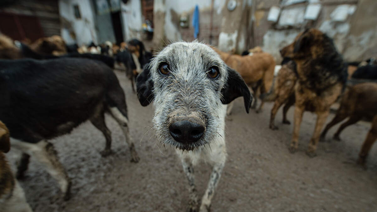 Is that a giant-hopping-rat-dog?? That's what this husky's expression says after spotting a kangaroo.